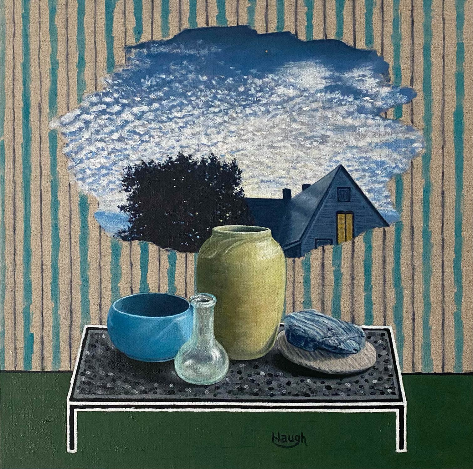 In this series of oil paintings I am exploring the Cosmos by reflecting on our collective place within it. The black table represents the void of space and all of it's unknowable secrets. The still-life objects are curated to invoke symbols of Earth and Humanity. Much like the objects on the table, we too, exist as a tableau-vivant supported by the timeless black abyss of infinite space.