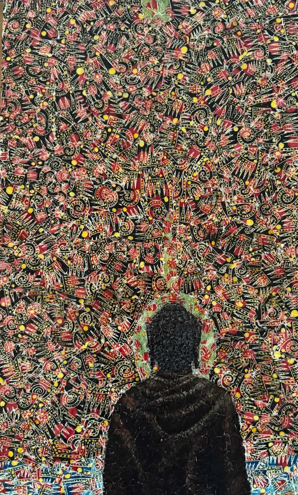 Picking up pieces of broken eggshells and reconstructing them into new images, the work of my studio, seems like an apt metaphor for this moment. This process born out of recycling studio detritus has offered me a new way to construct new worldviews. Bringing forward from the past images, designs, and compositions can visually realign how we see our own world in these times.”